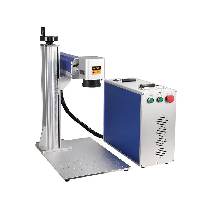 This is a fiber laser marking machine, uses fiber laser source, has high output power and good marking effect.